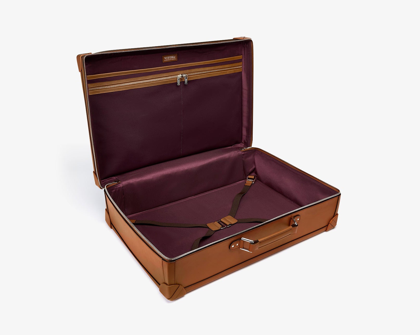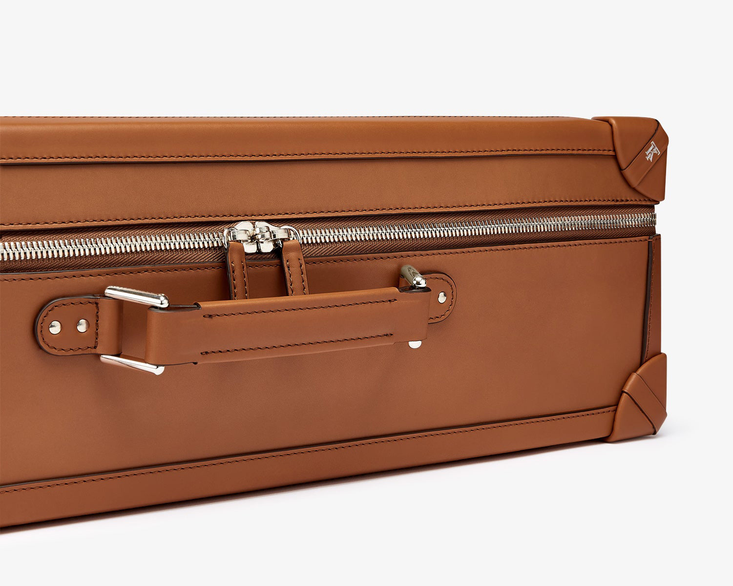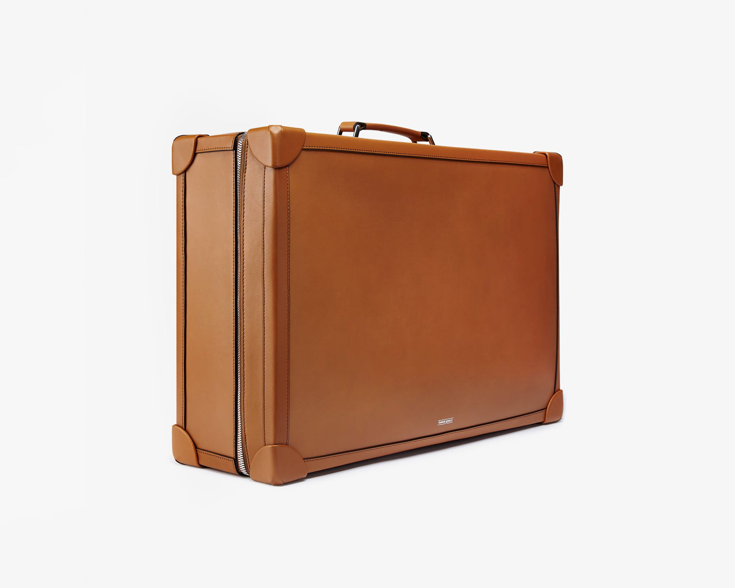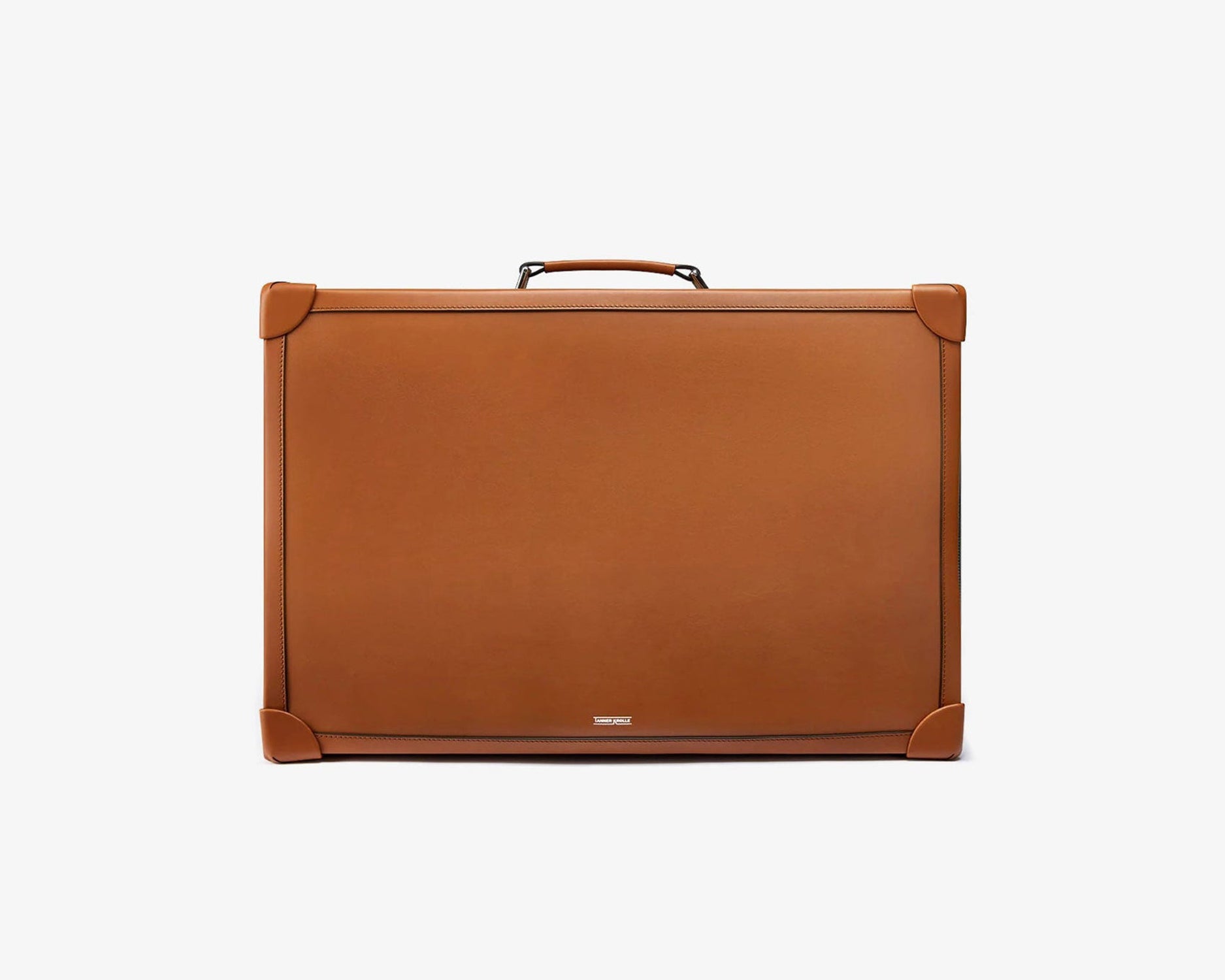 Paying homage to our heritage in bespoke luggage, the Soft Trunk 55 Cabin in Saddle showcases a timeless silhouette with TK-embossed folded corners.