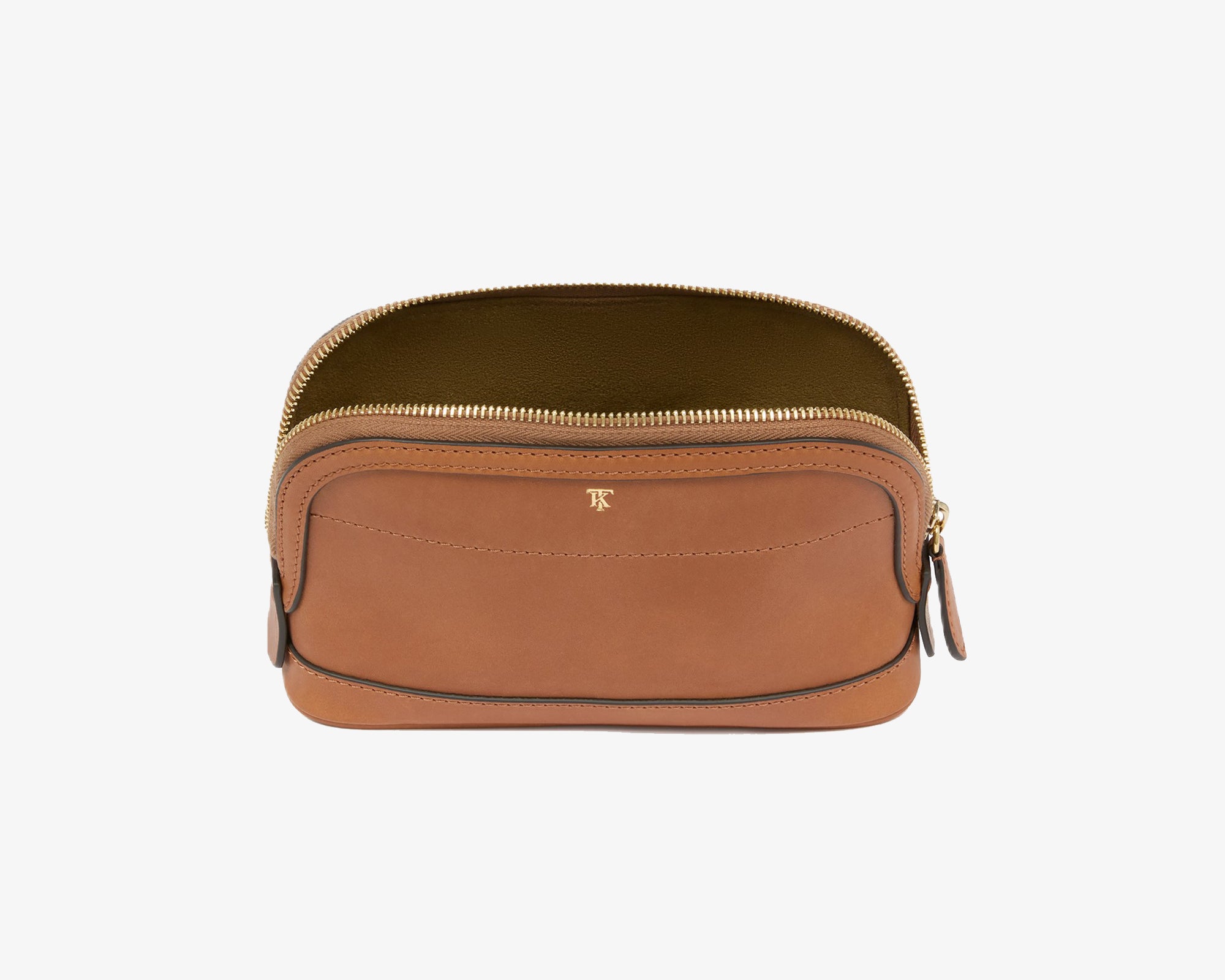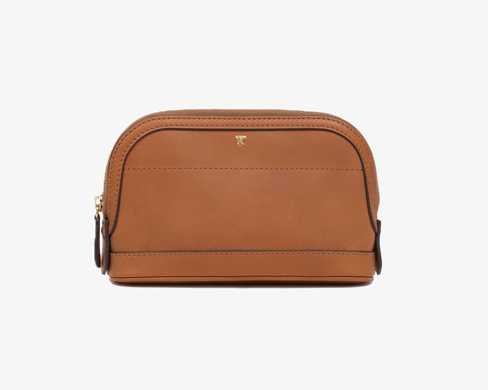 Made with smooth calfskin leather, the Medium Sportsman Washbag in Saddle is ideal for use as a shaving kit, small cosmetics bag, or to carry other travel essentials.