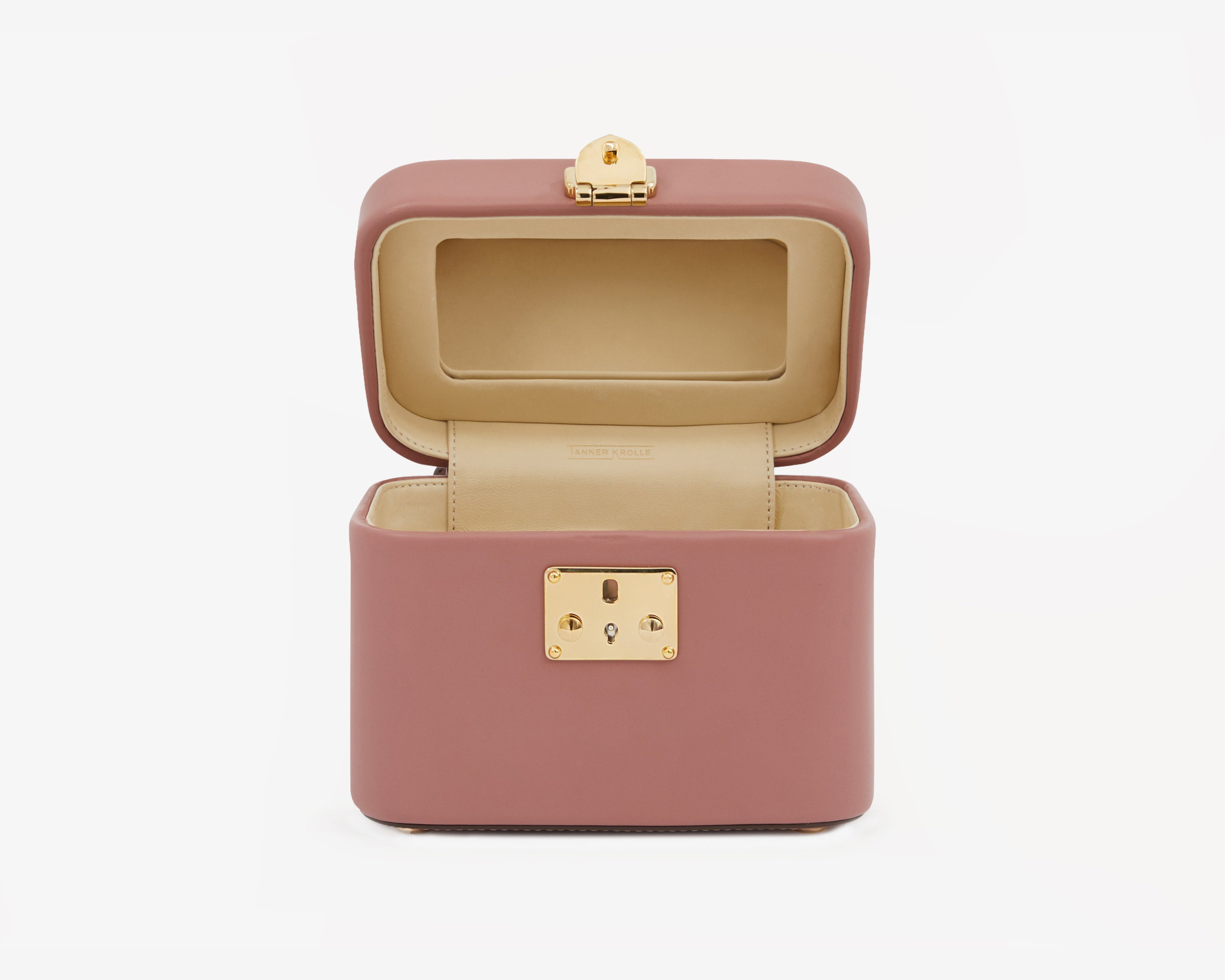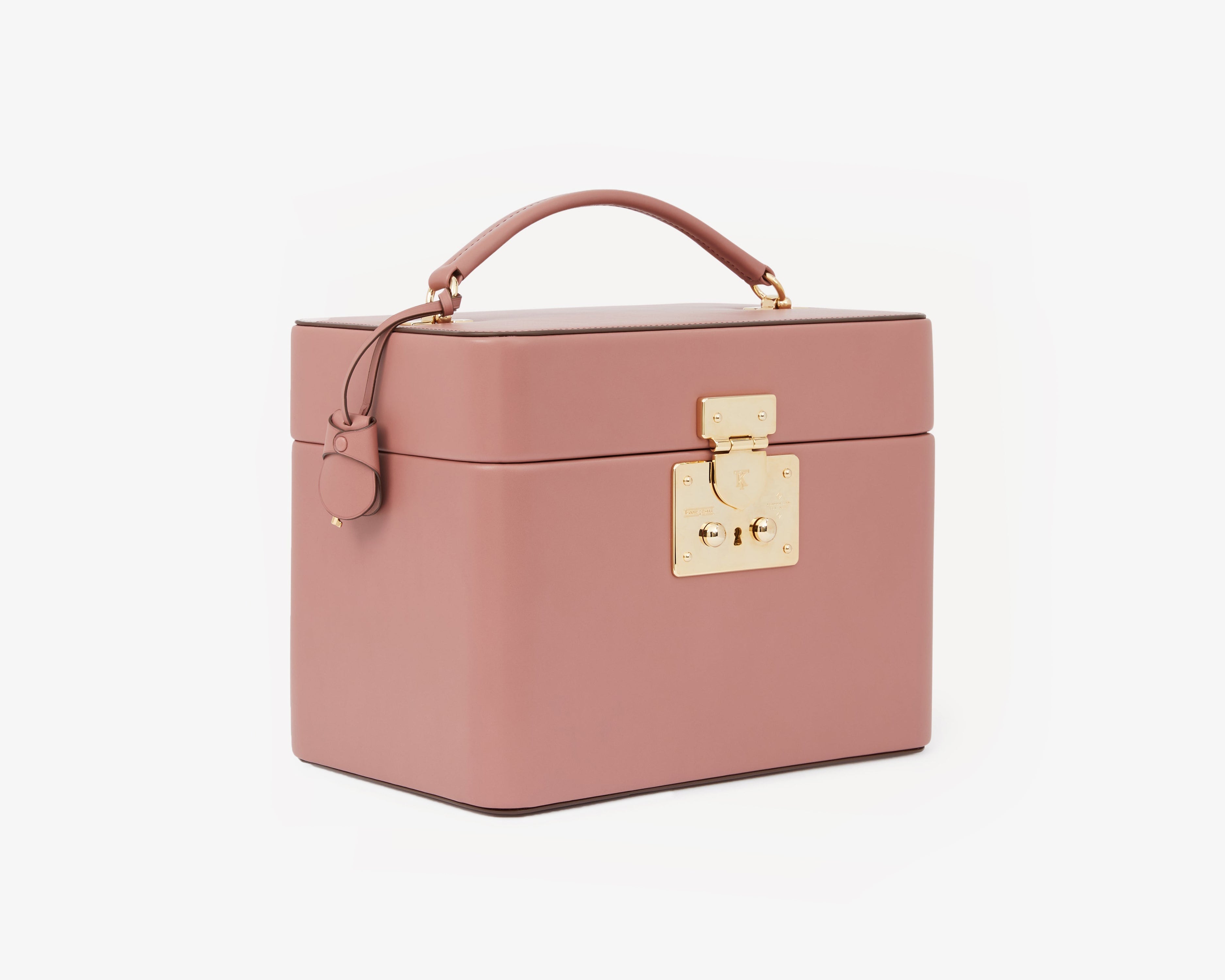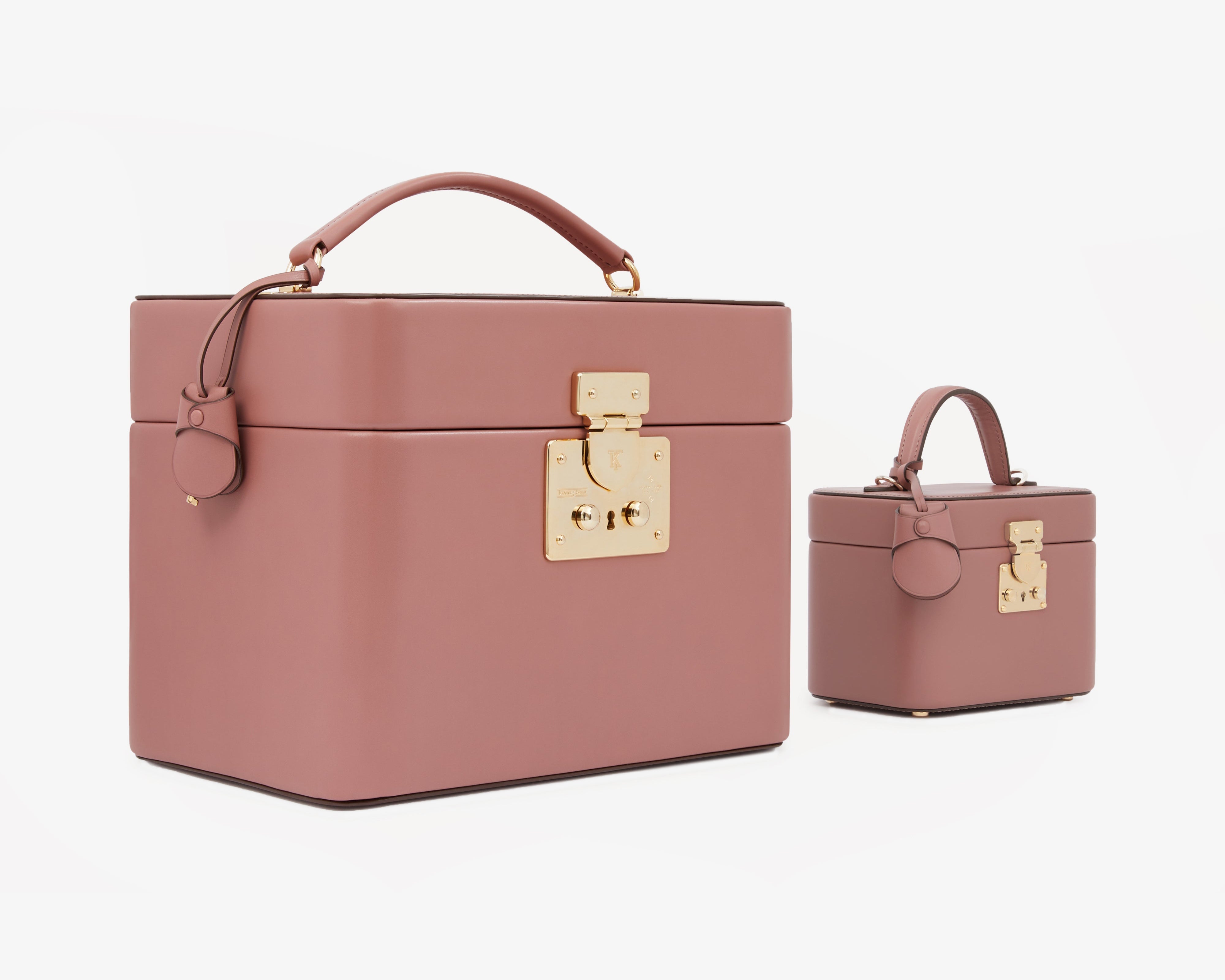 The Annabel Handbag shares the signature features of our larger Annabel Vanity case, including a vanity mirror, detachable jewellery tray, and signature gold TK lock. It also includes a top handle and detachable adjustable cross body strap for versatile wear.