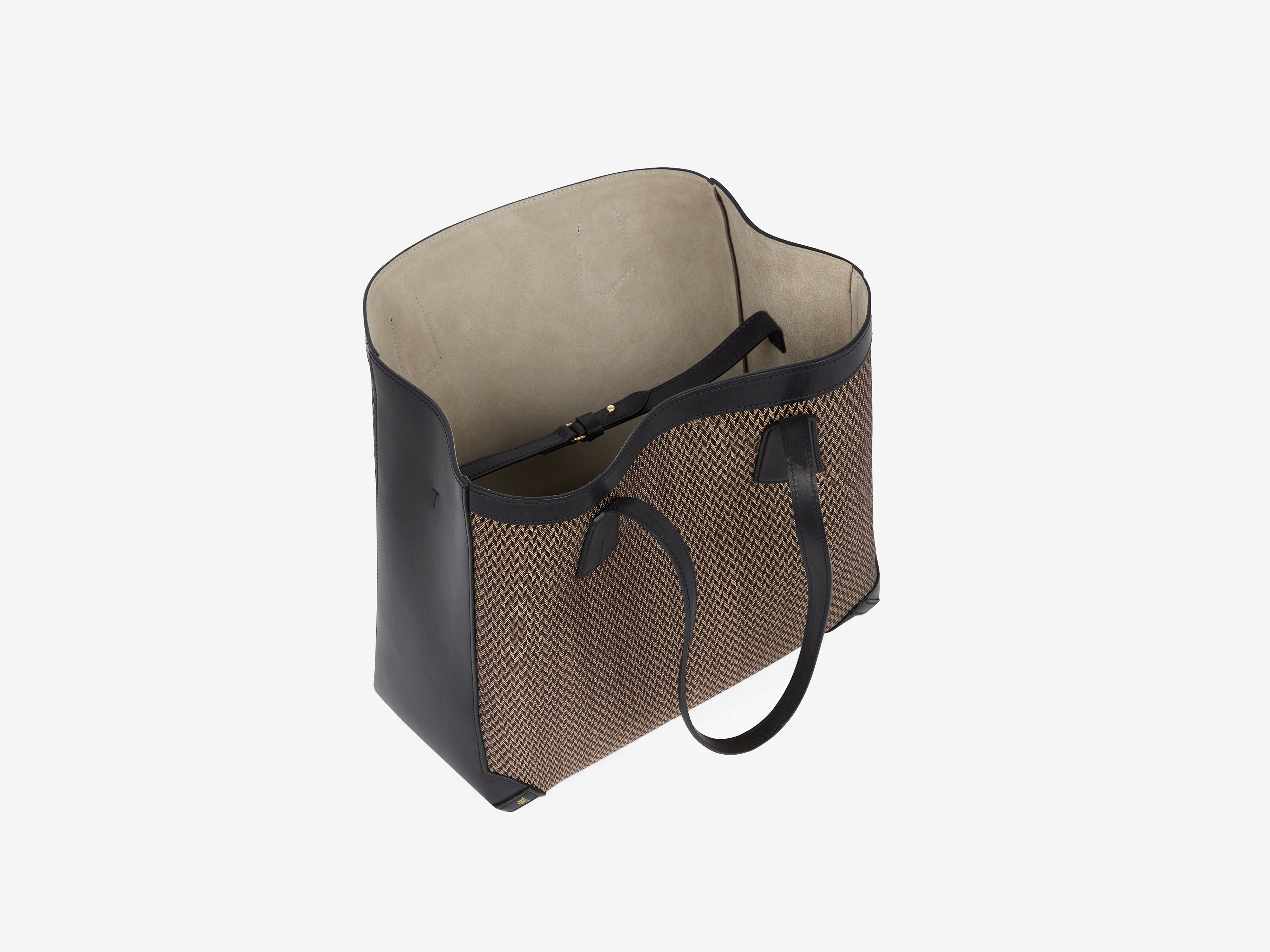 Featuring a striking blend of British woven horsehair and calfskin leather, the Cadogan Tote in Black is perfectly sized for work and day-to-day use.