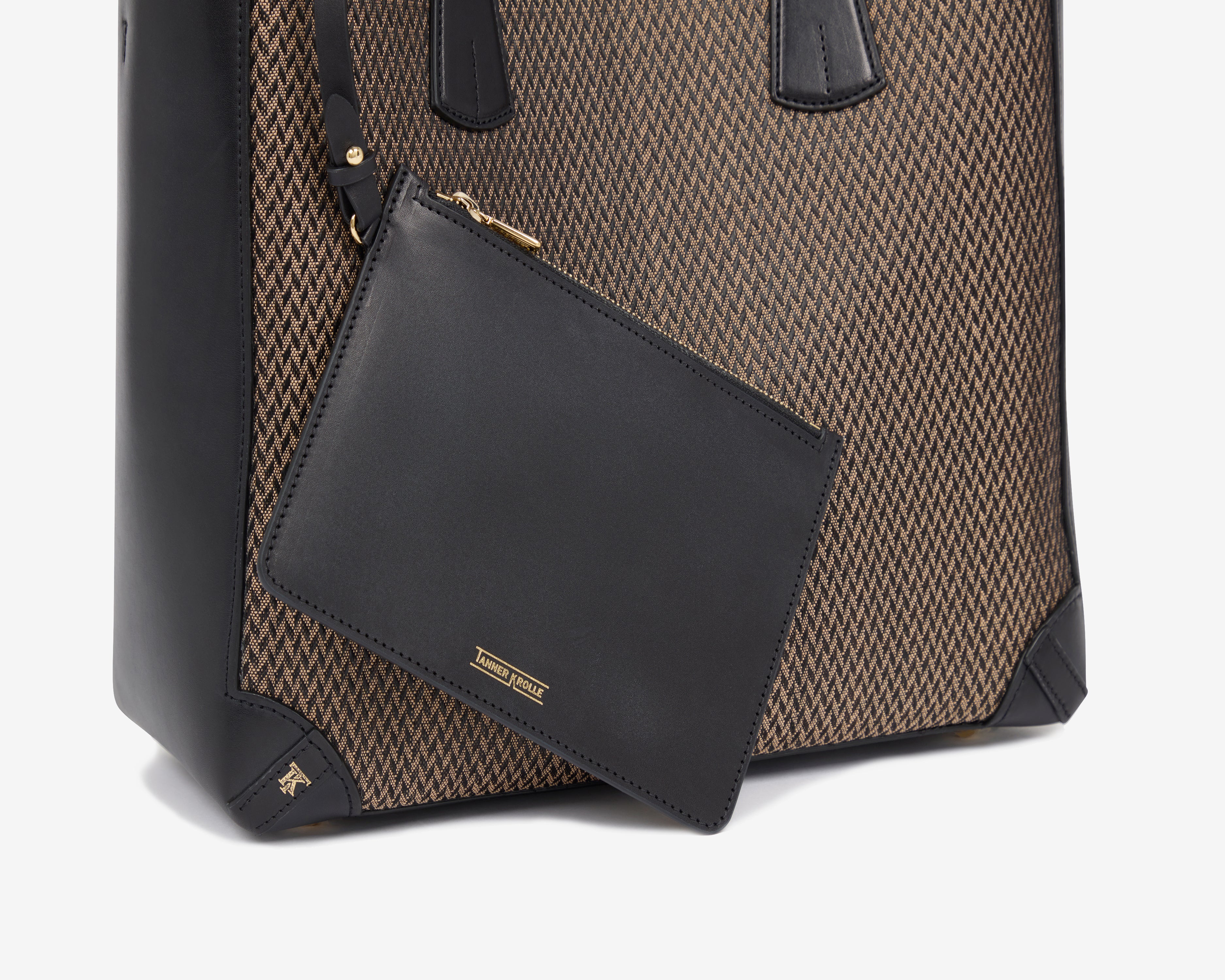 Blending elegance with practicality, it includes over-the-shoulder top handles, a detachable leather zip pouch for essentials, and protective metal studs at the base. This bag also features our signature TK-embossed folded corners as a tribute to our heritage in bespoke luggage.