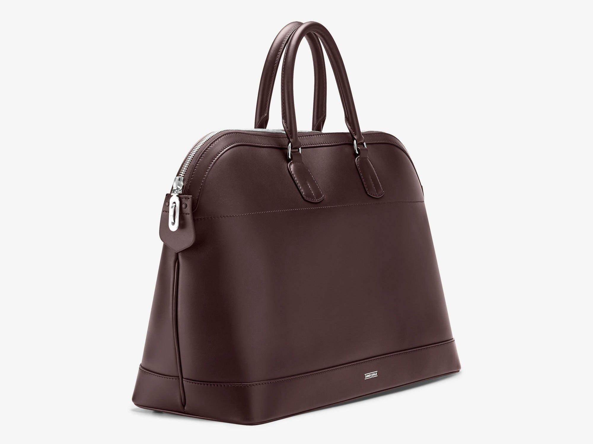Complete with top handles, an adjustable and detachable leather shoulder strap, and a top zip fastening with a padlock closure for enhanced security, this bag ensures comfort and peace of mind while on the move. Finished with protective studs on the base, it combines style with durability.